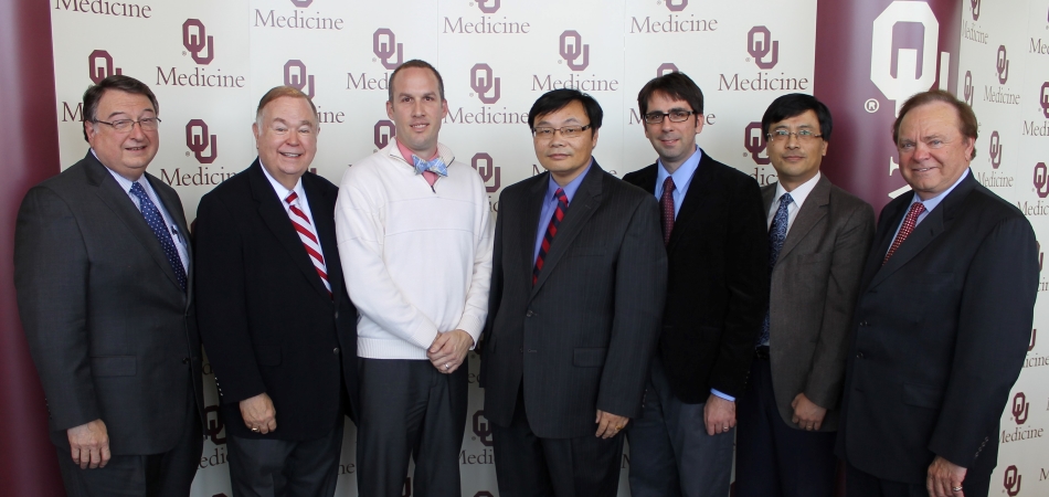 M. Dewayne Andrews, MD, MACP, OU President - David Boren, Frank Hays, PhD, Yun Le, PhD, Kenneth Humphries, PhD, Jian Xu, PhD, and Mr. Harold Hamm
